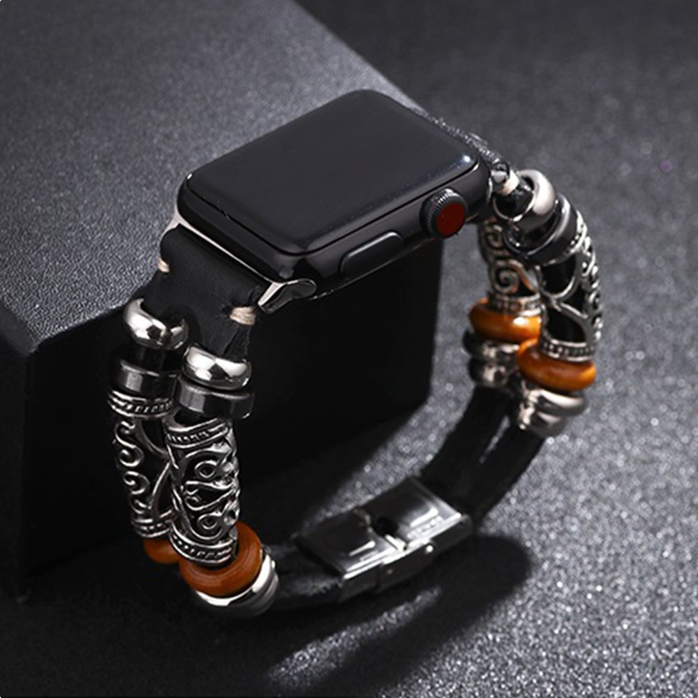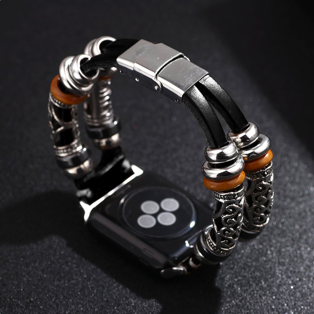 • > High Tech>Objets connectés>Accessoires Apple Watch>Bracelet Vintage avec ornement en relief ethnique ,noir Compatible avec Apple Watch 42-44 mm