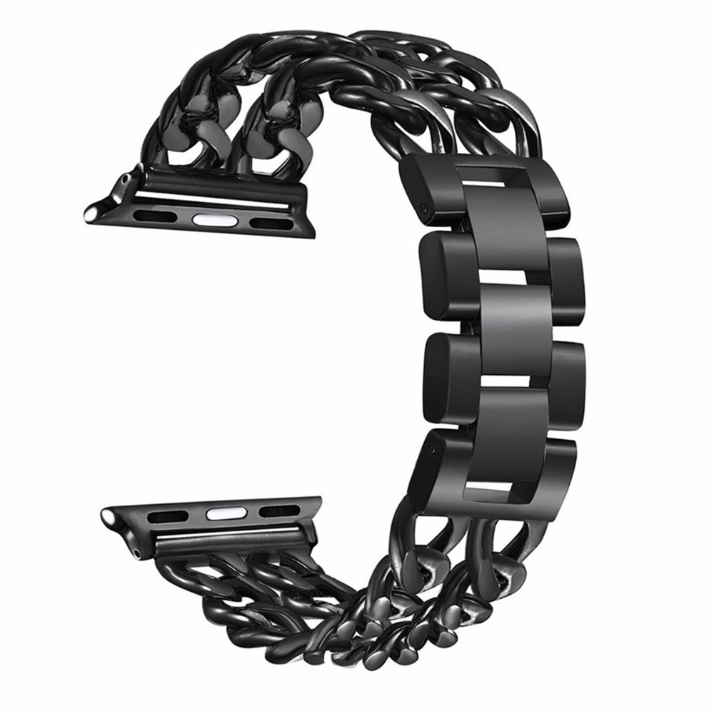 • Bracelet chaîne en acier inoxydable Noir Compatible avec  Apple Watch 38-40