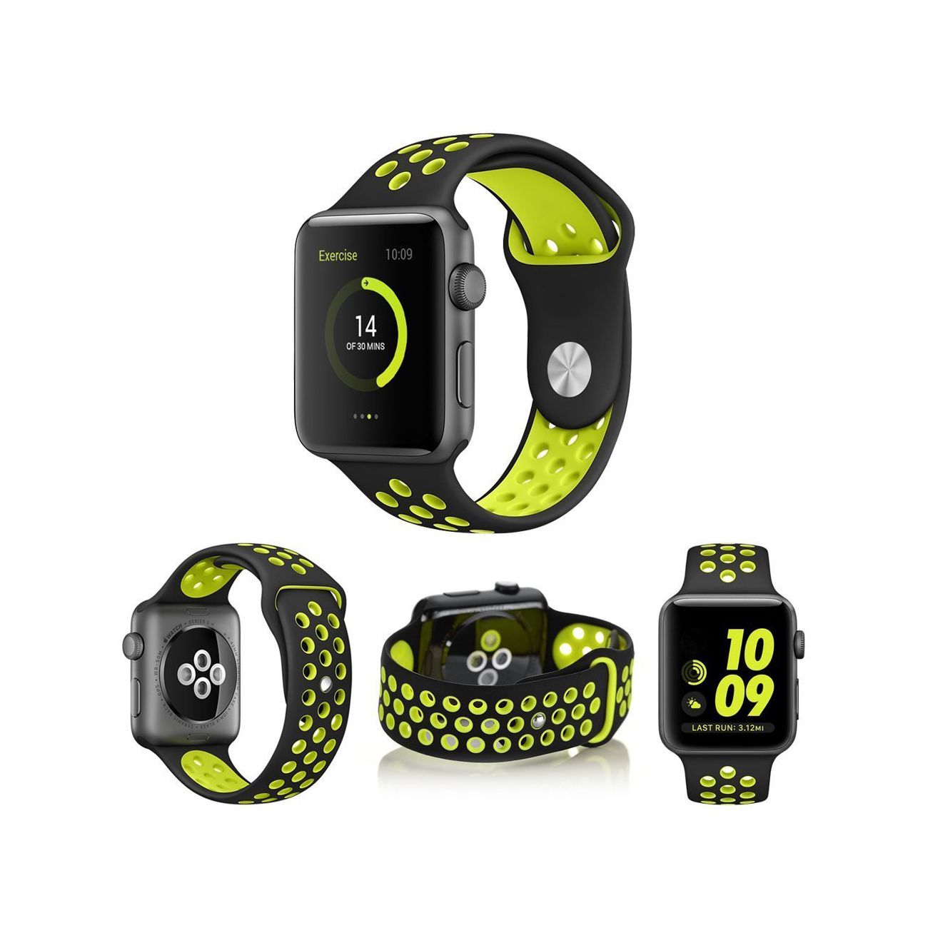 Bracelet perforé en silicone pour Apple Watch 42mm - Noir et vert