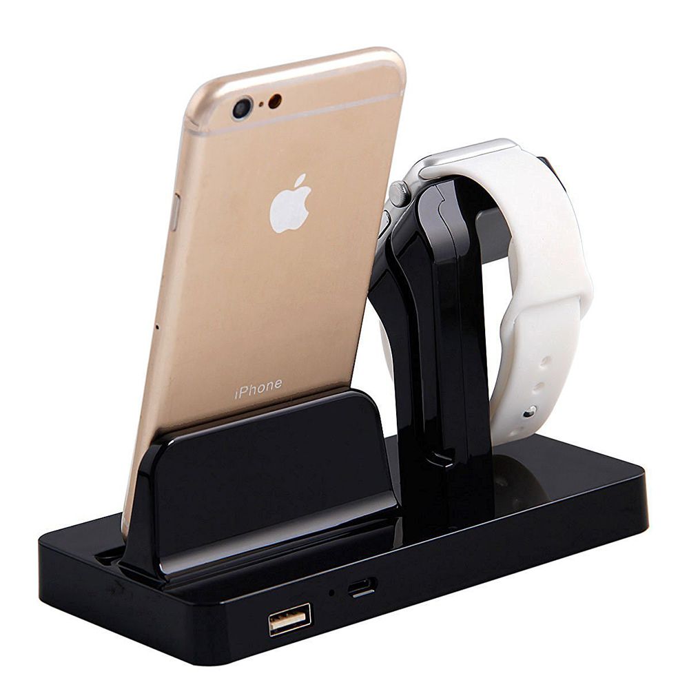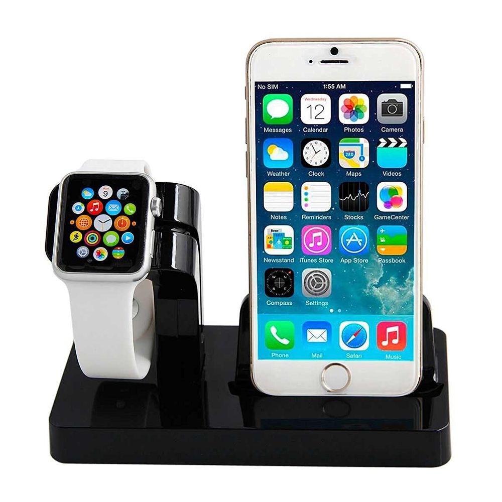 Support pour Apple Watch et iPhone - Noir (vendu sans la montre et le téléphone)