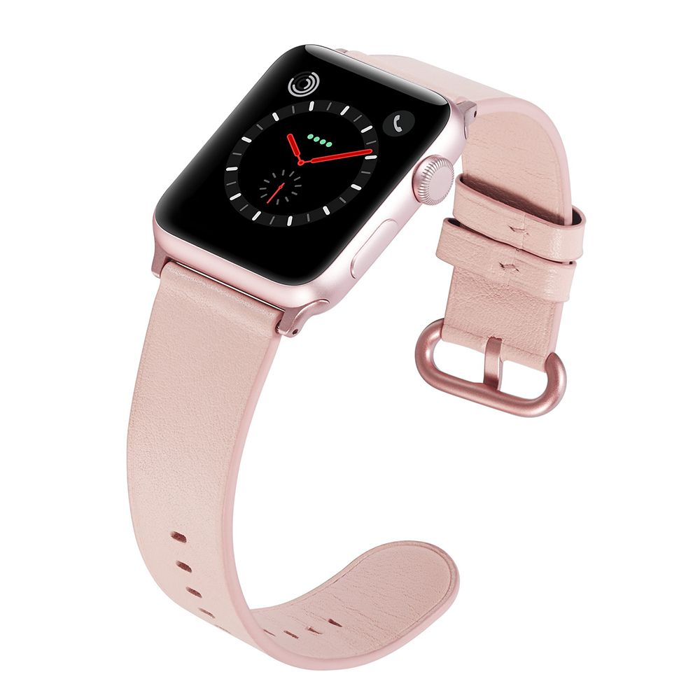 • > High Tech>Objets connectés>Accessoires Apple Watch>Bracelet 38mm compatible avec Apple Watch aspect cuir rose gold avec finitions chromés