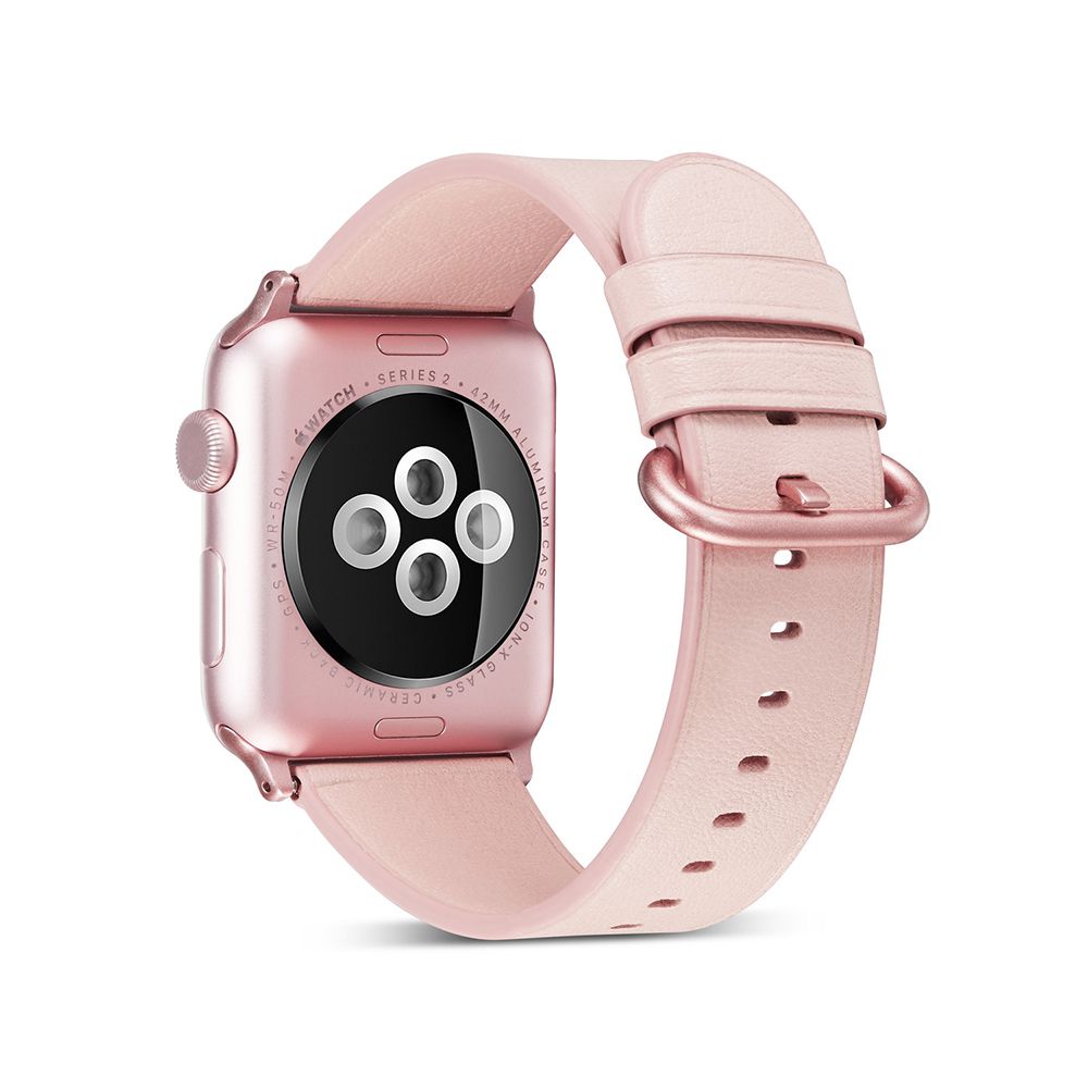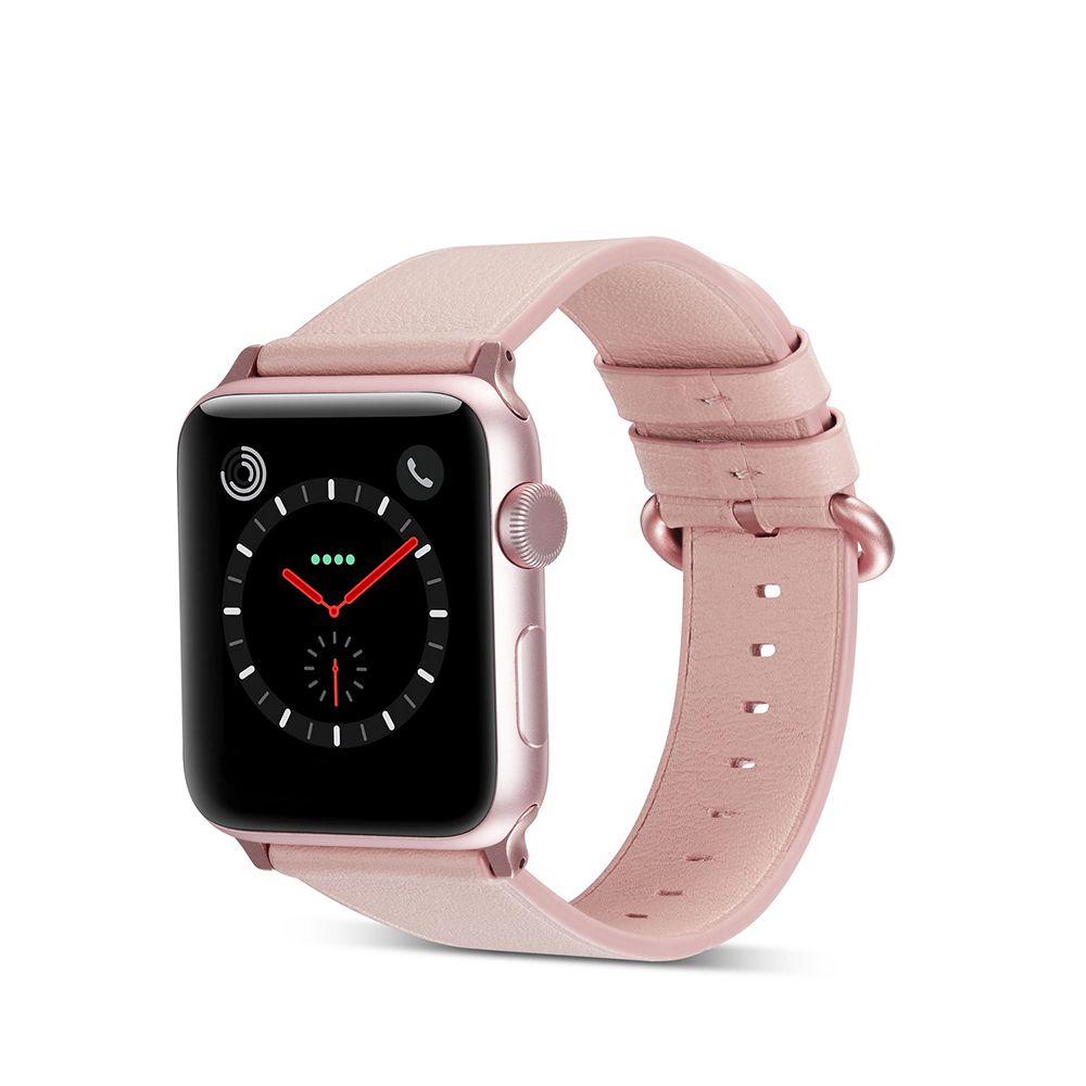 • > High Tech>Objets connectés>Accessoires Apple Watch>Bracelet 44mm aspect cuir rose gold avec finitions chromés compatible avec Apple Watch