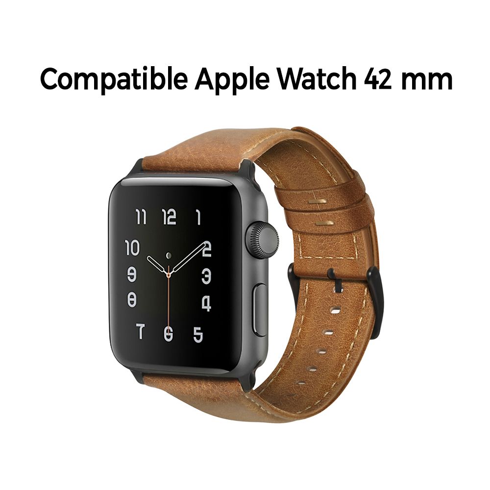 Bracelet aspect cuir camel avec finitions chromés pour Apple Watch 42mm