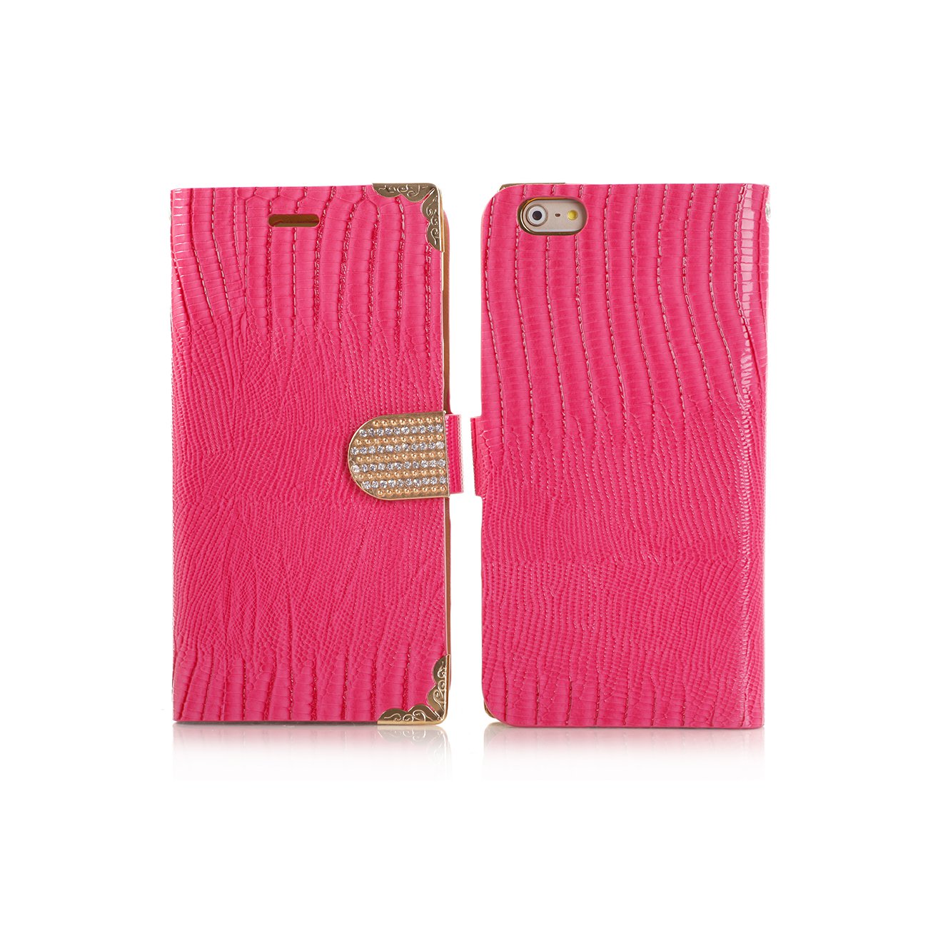 Etui livre croco rose à strass pour Apple iPhone 6 Plus