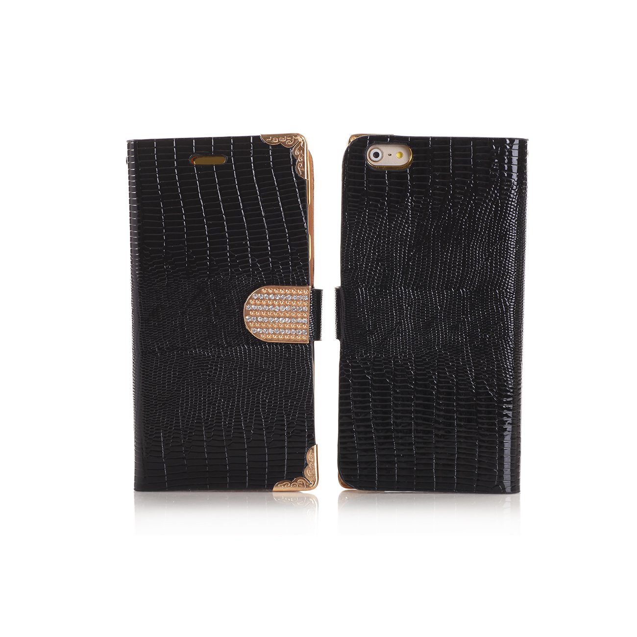 Etui livre croco noir à strass pour Apple iPhone 6 Plus