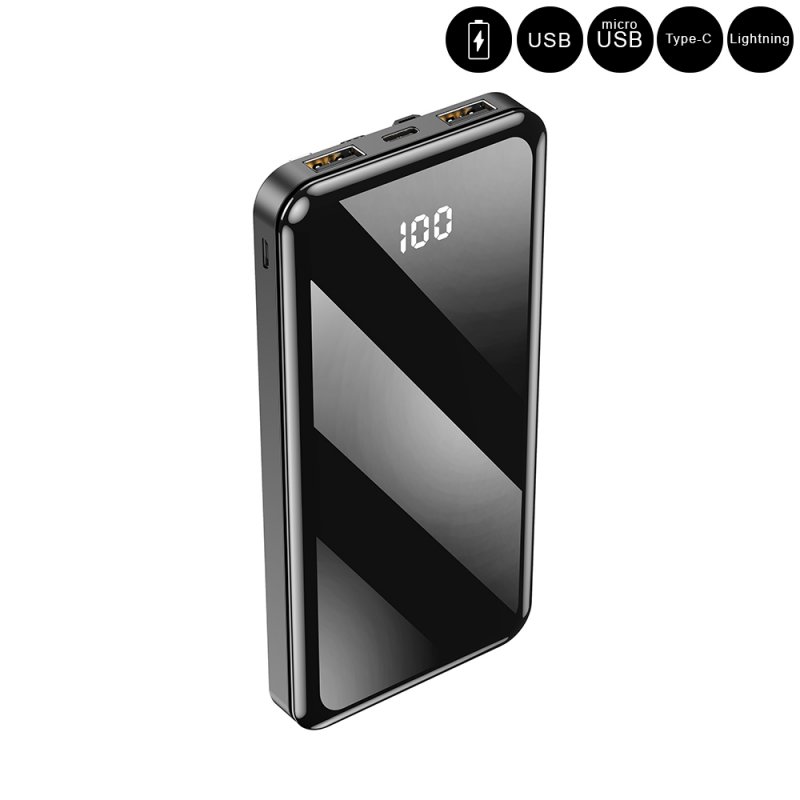 • Batterie de secours 10 000 mAh avec câbles USB +USB-C + Lightning + microUSB  inclus - noir