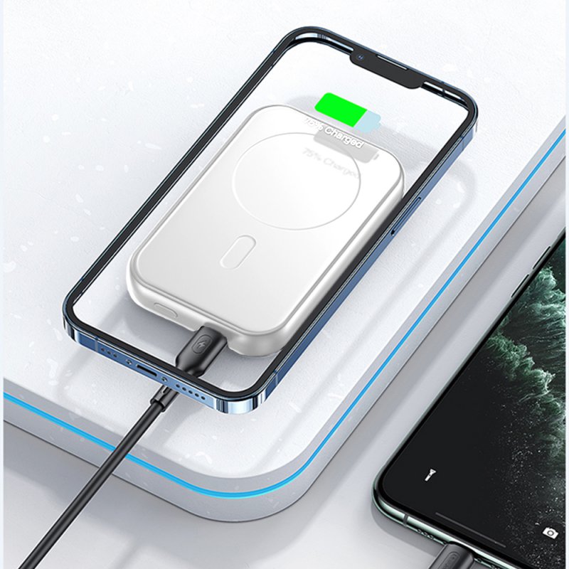 Batterie de secours sans fil magnétique à charge rapide 10000mAhCaractéristiques :1. Chargement magnétique sans fil pour la série iP 13/12.2. Charge rapide bidirectionnelle PD, grande capacité de 10 000 mAh.3. Sorties filaires + sans fil, chargez 2 appareils en synchronisation.4. Mini et portable, doux pour la peau et confortable à utiliser.Matériel: ABS + PCCapacité : 10000 mAhCapacité nominale : 6 000 mAhÉnergie nominale : 37 WhPuissance : 20 W (maximum)Taille : 19*69*107mmPoids : Environ 203gEntrée de type C : 5V⎓3A 9V⎓2ASortie Type-C : 5V⎓3A 9V⎓2.22A 12V⎓1.67ASortie de charge sans fil : 15 W (max.)Sortie totale : 5V⎓2ATemps de charge (entrée) : environ 3 heuresBatterie : batterie Li-polymèreAccessoire : câble de données de type C à type C * 1Compatibilité : Pour la série iP12/13 (charge par adsorption magnétique) ;Pour les autres appareils avec fonction de charge sans fil (charge non magnétique).Pour les appareils avec port Type-C (charge via un câble Type-C)