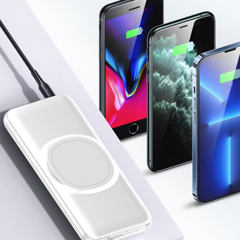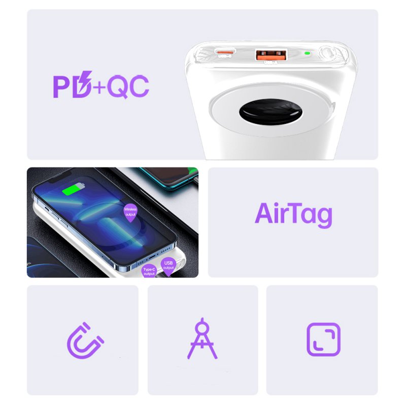 Batterie de secours Magnétique Sans Fil Charge Rapide 20W avec Affichage LED avec Support 10000mAh Prise en charge du chargement sans fil magnétique de la série IPHONE 13/12Avec un support caché, pratique pour une visualisation mains libres tout en chargeant votre téléphoneUn emplacement de stockage est conçu pour Apple Airtag, sortez-le à volonté, pratique à utiliserPrend en charge la charge sans fil et la charge filaire, chargeant 3 appareils en synchronisationPrend en charge PD/SCP/FCP/QC et d'autres protocolesCharge rapide bidirectionnelle PD, utilisant un chargeur rapide PD 18 W (non inclus) pour une charge complète par la banque d'alimentation elle-même en 3,5 heuresAffichage LED Affichages numériques PUISSANCE DISPONIBLE numériqueCaractéristiques:1. Forte adsorption magnétique, pratique en charge.2. Charge rapide PD + QC, large compatibilité.3. Chargez 3 appareils en synchronisation, batterie d'affichage numérique.4. Avec support pliant, trou de rangement pour AirTag.Capacité : 10000 mAhCapacité nominale : 6 000 mAhÉnergie nominale : 37 WhPuissance : 22,5 W (maximum)Taille : 72.3*23.5*15.5mmPoids : Environ 244gEntrée Type-C : 5V⎓2.4A 9V⎓2A 12V⎓1.5ASortie Type-C : 5V⎓2.4A 9V⎓2.22A 12V⎓1.67ASortie USB : 4.5V⎓5A 5V⎓4.5A 5V⎓3A 9V⎓2A 12V⎓1.5ASortie de charge sans fil : 15 W (max.)Trois sorties synchronisées : 5V⎓3ATemps de charge (entrée) : environ 3,5 heuresBatterie : batterie Li-polymèreAccessoire : câble de charge de type C * 1Compatibilité : Pour les appareils numériques