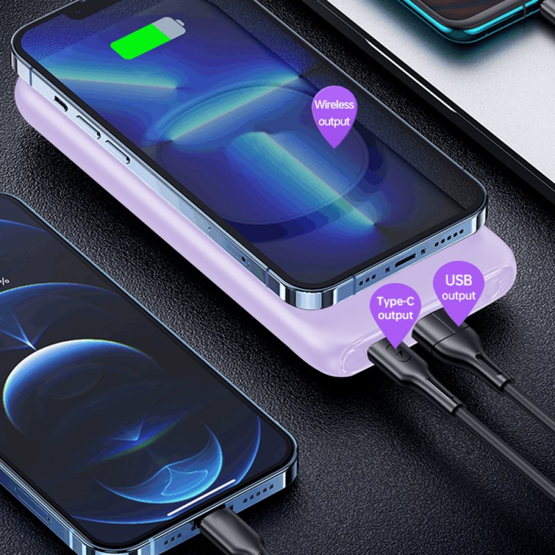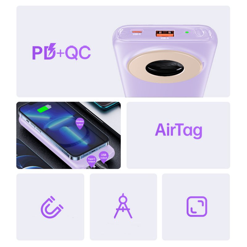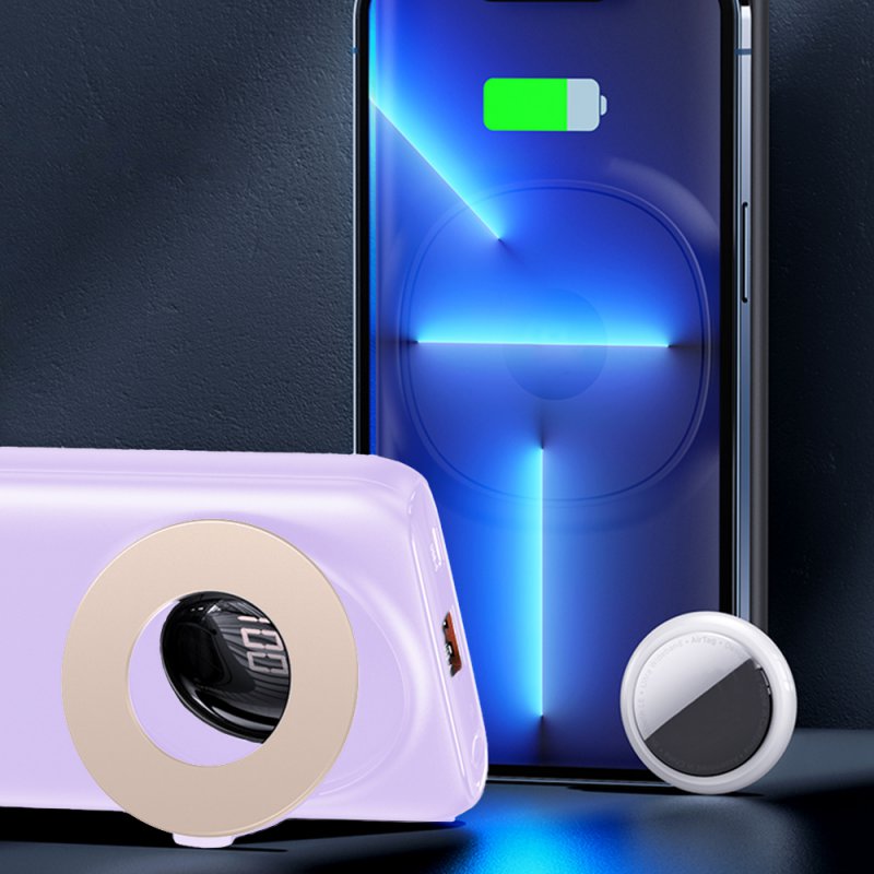 Batterie de secours Magnétique Sans Fil Charge Rapide 20W avec Affichage LED avec Support 10000mAh Prise en charge du chargement sans fil magnétique de la série IPHONE 13/12Avec un support caché, pratique pour une visualisation mains libres tout en chargeant votre téléphoneUn emplacement de stockage est conçu pour Apple Airtag, sortez-le à volonté, pratique à utiliserPrend en charge la charge sans fil et la charge filaire, chargeant 3 appareils en synchronisationPrend en charge PD/SCP/FCP/QC et d'autres protocolesCharge rapide bidirectionnelle PD, utilisant un chargeur rapide PD 18 W (non inclus) pour une charge complète par la banque d'alimentation elle-même en 3,5 heuresAffichage LED Affichages numériques PUISSANCE DISPONIBLE numériqueCaractéristiques:1. Forte adsorption magnétique, pratique en charge.2. Charge rapide PD + QC, large compatibilité.3. Chargez 3 appareils en synchronisation, batterie d'affichage numérique.4. Avec support pliant, trou de rangement pour AirTag.Capacité : 10000 mAhCapacité nominale : 6 000 mAhÉnergie nominale : 37 WhPuissance : 22,5 W (maximum)Taille : 72.3*23.5*15.5mmPoids : Environ 244gEntrée Type-C : 5V⎓2.4A 9V⎓2A 12V⎓1.5ASortie Type-C : 5V⎓2.4A 9V⎓2.22A 12V⎓1.67ASortie USB : 4.5V⎓5A 5V⎓4.5A 5V⎓3A 9V⎓2A 12V⎓1.5ASortie de charge sans fil : 15 W (max.)Trois sorties synchronisées : 5V⎓3ATemps de charge (entrée) : environ 3,5 heuresBatterie : batterie Li-polymèreAccessoire : câble de charge de type C * 1Compatibilité : Pour les appareils numériques