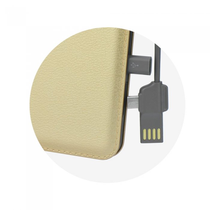 Batterie externe effet cuir grainé doré chargement rapide 10000 mAh
