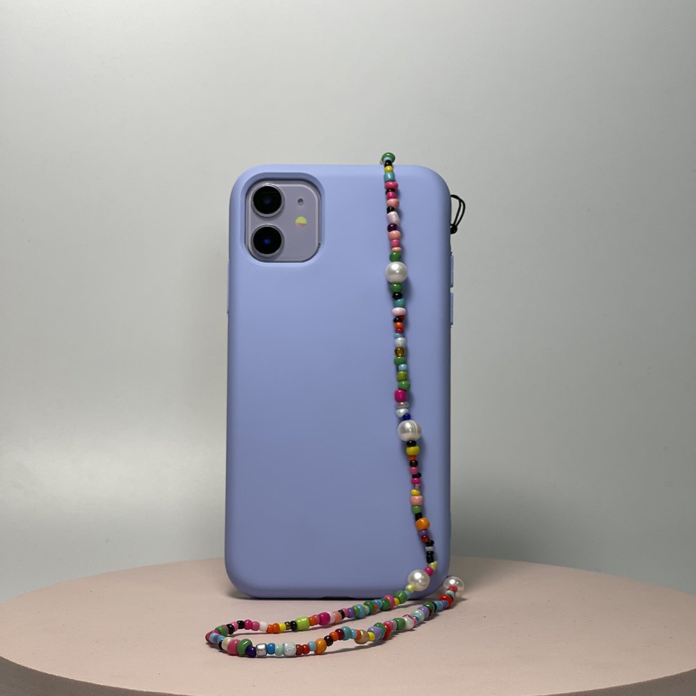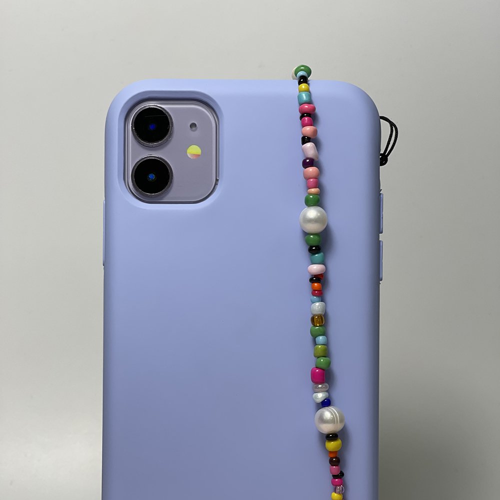 • Bijoux de téléphone LILA à accrocher à votre coque perles blanches et colorées - longueur 80 cm