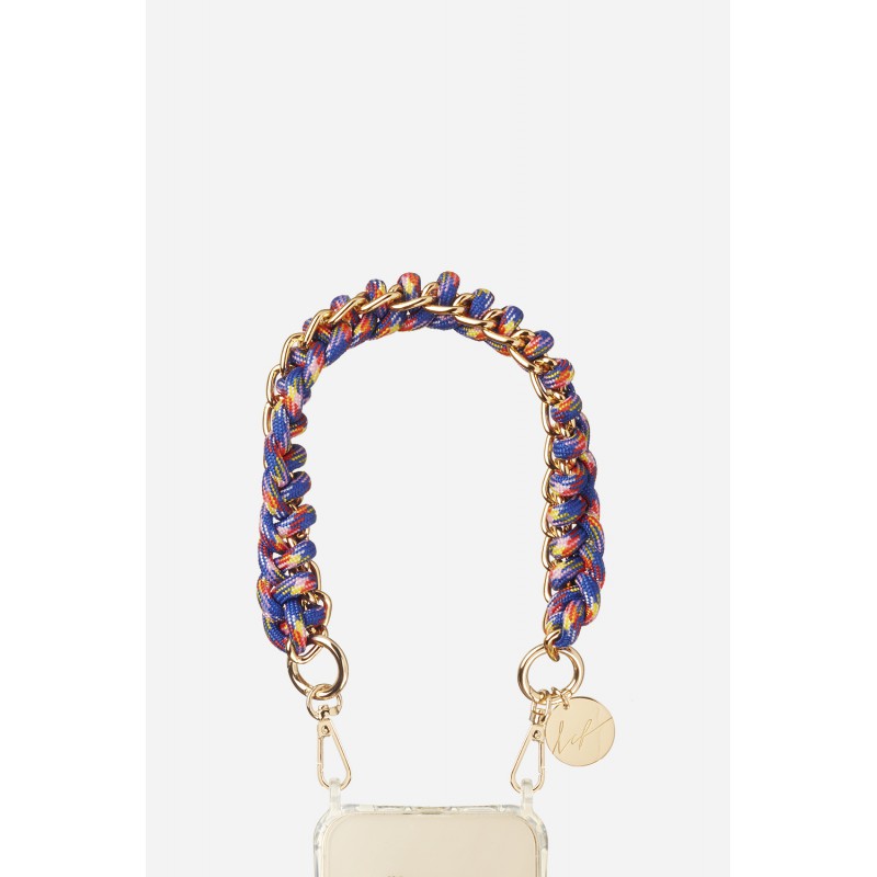 • > High Tech>Gadgets>Bijoux de téléphones>Bijoux de téléphone Romy avec mousquetons dorés 40 cm cordon tressé Bleu Rose Jaune avec chaîne en metal