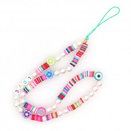 Bijoux de téléphone LUNA  à accrocher à votre coque perles blanches et colorées - longueur 80 cm