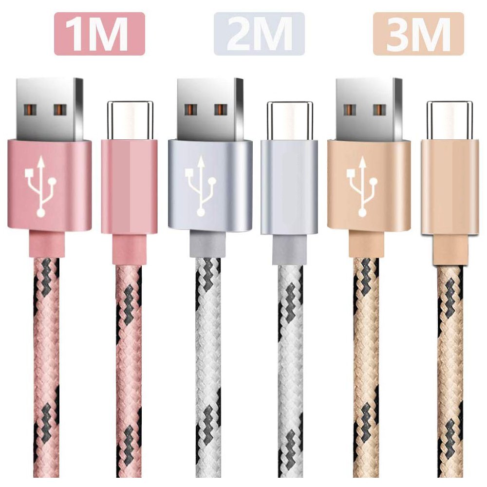 Lot 3 câbles Type C 1 m-2m-3m rose & argent : Une tension de 2.5V, un taux de conversion de 2.4A 85% ~ 95%. Le câble dispose d’une vitesse de charge bonne qualité et d’une transmission stable. La gaine en fibres de nylon de haute qualité offre une protection supplémentaire pour éviter d'endommager le câble lorsqu'il est plié. Utilisez ce câble USB pour recharger votre Appareil depuis votre Mac ou votre PC Windows ou bien à partir d'une prise murale (non fournie).Très pratique d'utilisation, préférez ce câble pour une charge stable et en toute sécurité. La conception du circuit sophistiqué avec la protection contre la surintensité, la surcharge et le court-circuit. Pack de 3(1M Or Rose+2M Argent+3M Or Rose ) pour diverses occasions: la longueur de 1 mètre vous permet d’atteindre facilement un port USB en avant/arrière des ordinateurs/adaptateurs muraux. La longueur de 2 mètres, à savoir la longueur parfaite pour la chambre/le bureau, peut charger votre iPhone commodément. La longueur de 3 mètre vous permet de charger librement pour de plus longue distance