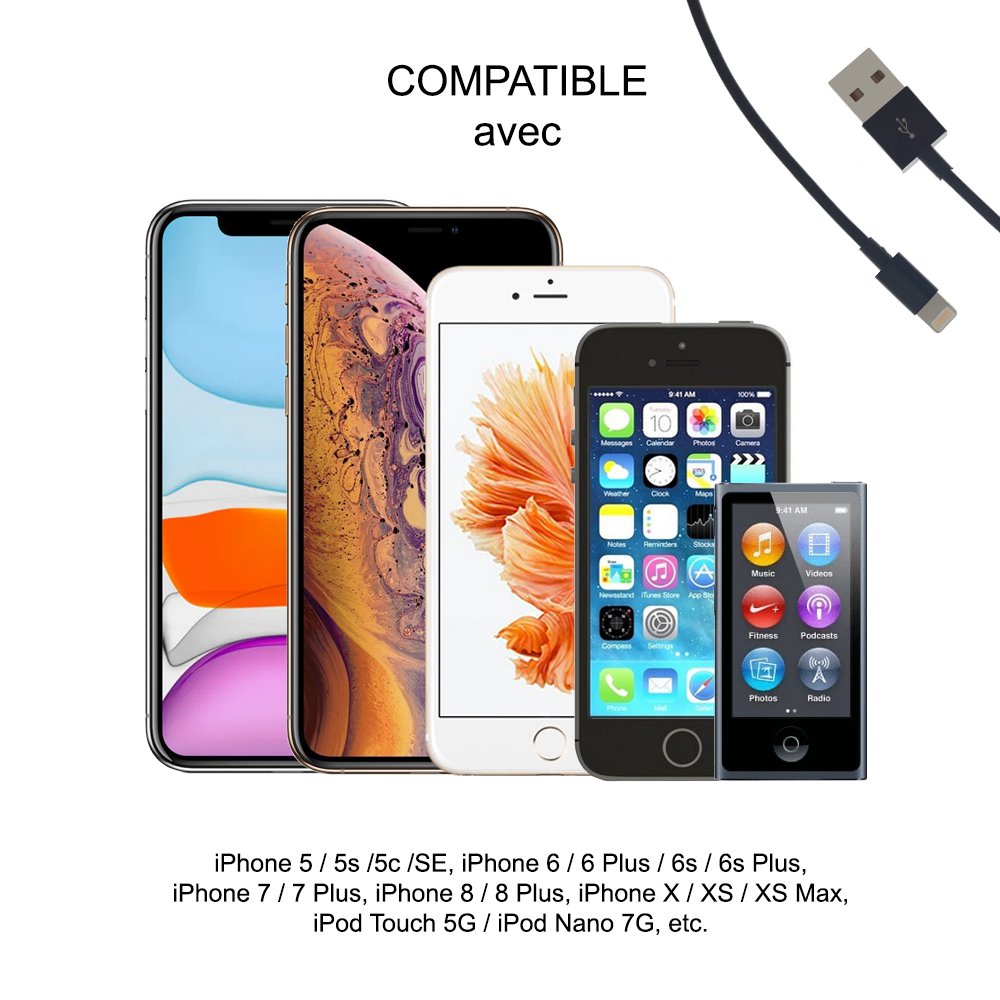 Utilisez ce câble USB Lightning pour recharger vos Appareils depuis votre Mac ou votre PC Windows ou bien à partir d'une prise murale (non furnie). Très pratique d'utilisation, préférez ce câble pour une charge rapide et en toute sécurité.Disposant de la norme MFI, ce câble USB Lightning a été conçu pour se connecter spécifiquement à l'iPod, iPhone ou iPad et a été certifié par le développeur pour répondre aux normes de performance d'Apple.