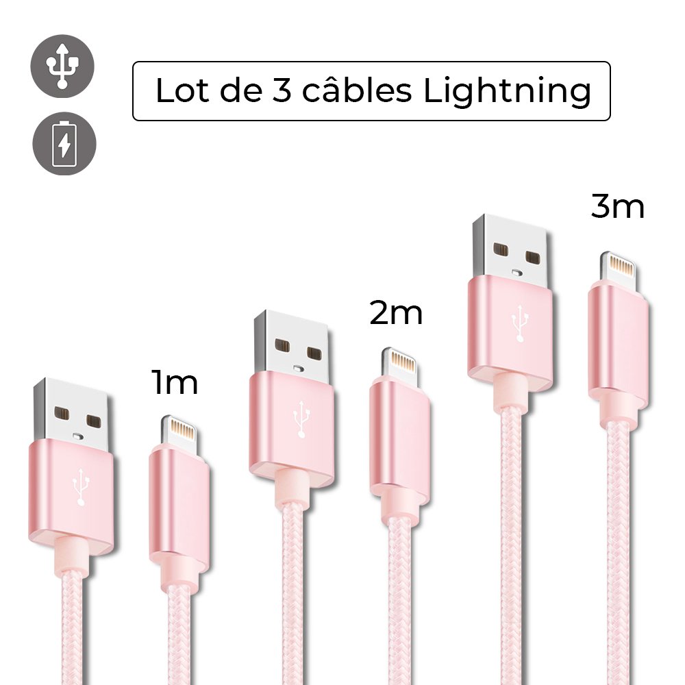 • Lot de 3 câbles USB Lightning pour IPHONE 5/6/7/8/X de charge & de synchronisation