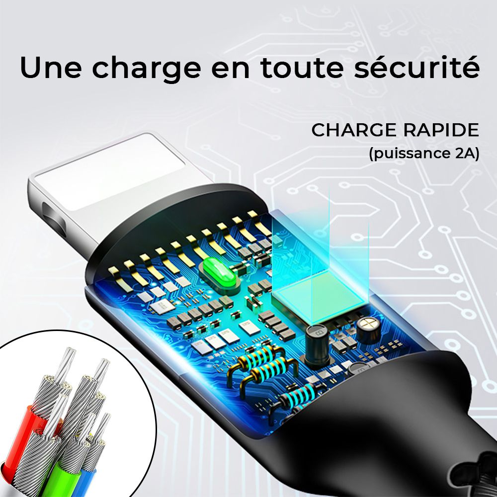 • Lot de 3 câbles USB Lightning pour IPHONE 5/6/7/8/X de charge & de synchronisation