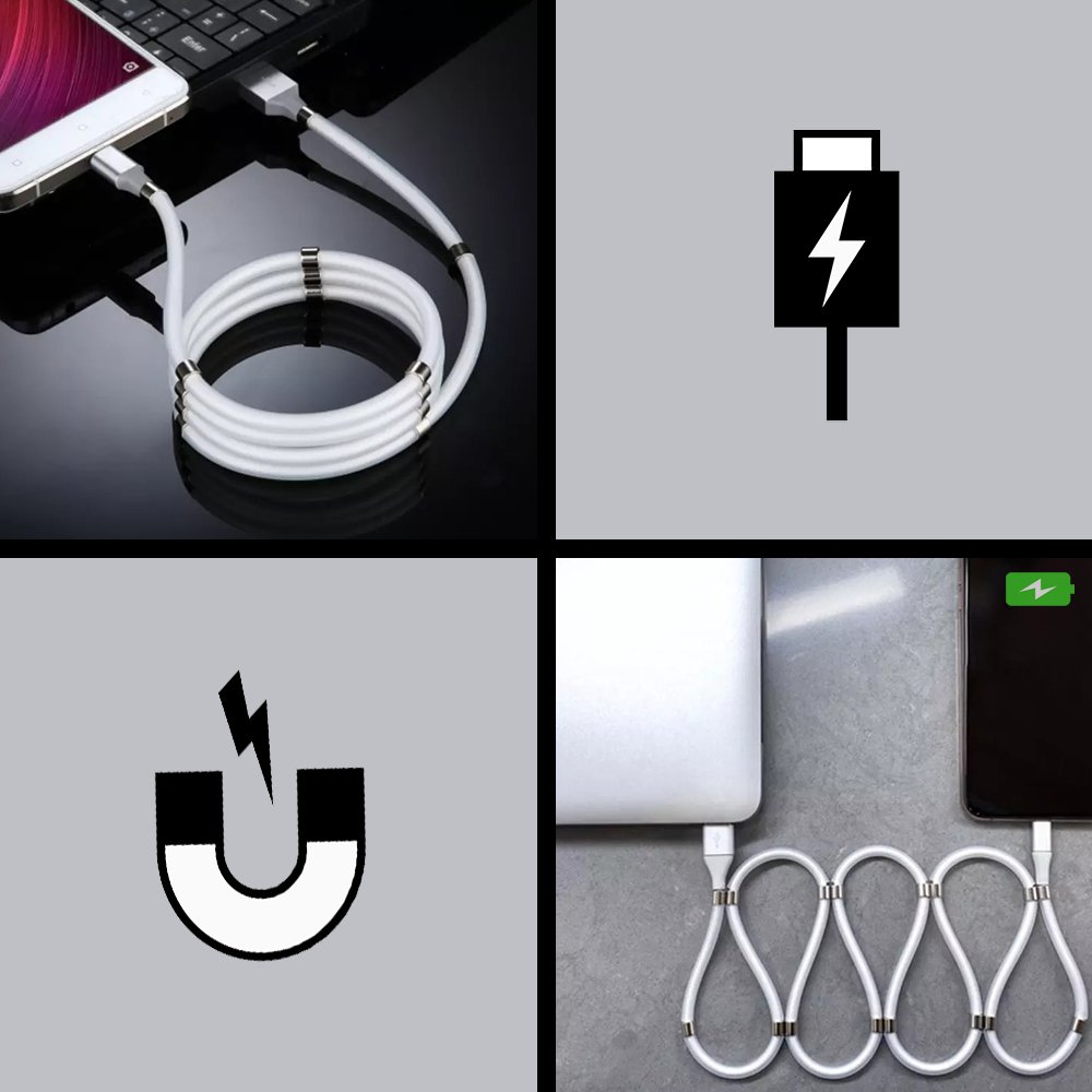 Câble Lightning magnétique anti noeud 1m Blanc