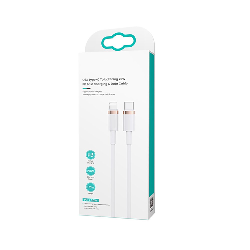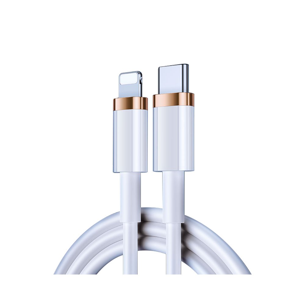 Câble lightning Type C 20W à charge rapide Blanc 2m Cable à charge rapide pour iPhone (8 à 12) 20W, 3A. Le câble apporte une charge de 50% en 30 minutes en toute sécurité, de manière stable. Le câble est également compatible avec la charge 18W pour la série iPhone 8-11 soit le système iOs. Câble de chargement et de transmission de données.
