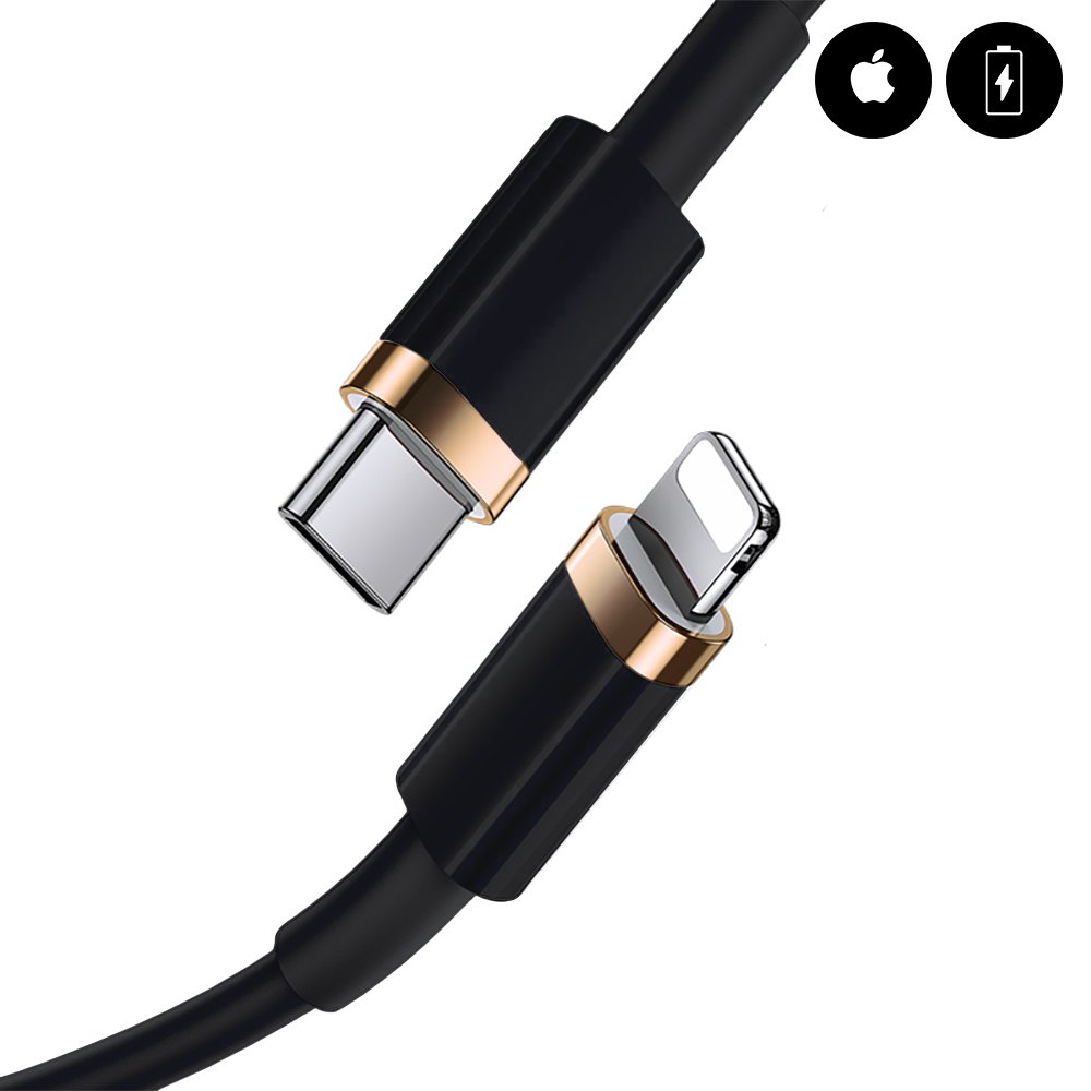 Câble lightning Type C 20W à charge rapide Noir 2m