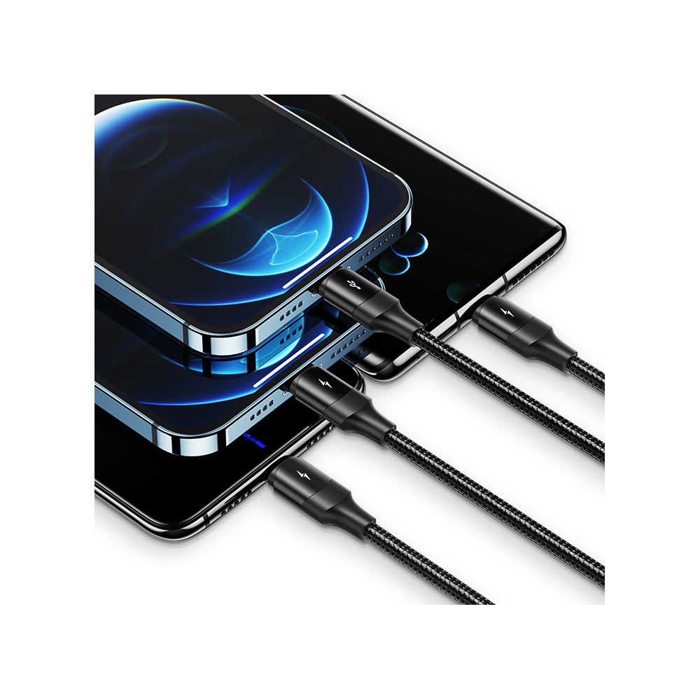 • Câble 4 en 1 : lightning, Type-C et Micro USB avec transmission de données et de charge rapide en alliage d'aluminium 1,2 m