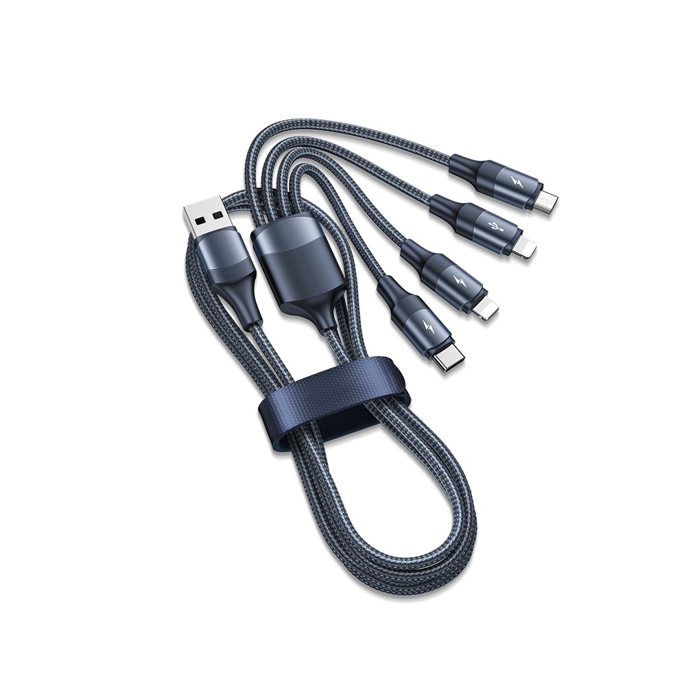 • > High Tech>Charge>Câble>Câble 4 en 1 : lightning, Type-C et Micro USB avec transmission de données et de charge rapide en alliage d'aluminium 1,2 m