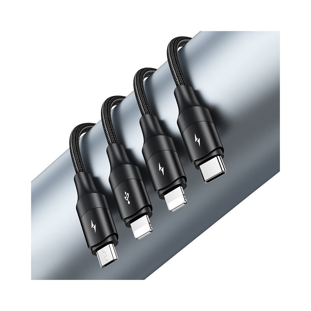 Câble 4 en 1 : lightning, Type-C et Micro USB avec transmission de données et de charge rapide en alliage d'aluminium 1,2 m