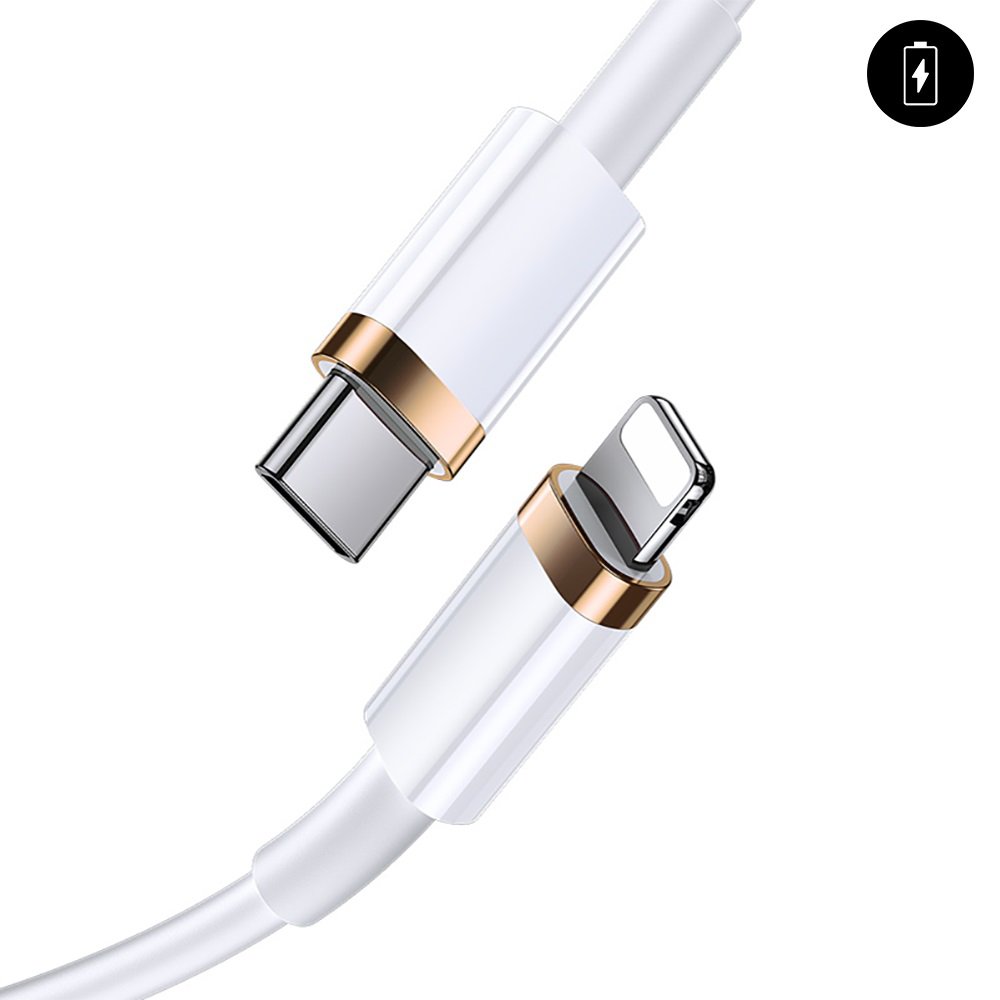 Câble lightning Type C 20W à charge rapide Blanc 2m Cable à charge rapide pour iPhone (8 à 12) 20W, 3A. Le câble apporte une charge de 50% en 30 minutes en toute sécurité, de manière stable. Le câble est également compatible avec la charge 18W pour la série iPhone 8-11 soit le système iOs. Câble de chargement et de transmission de données.
