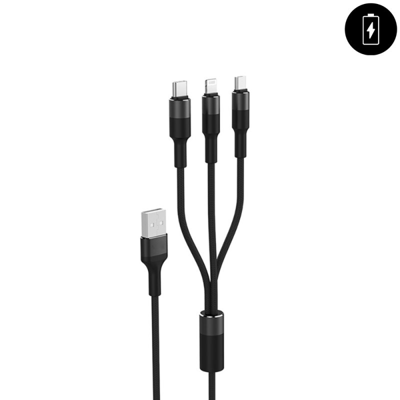 Cäble 3 en 1 USB 120 CM : lightning - USB C - micro USB Noir