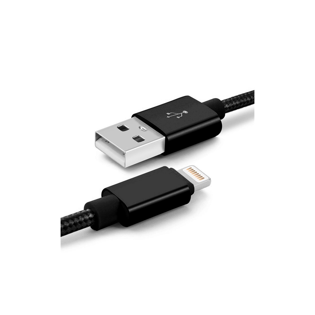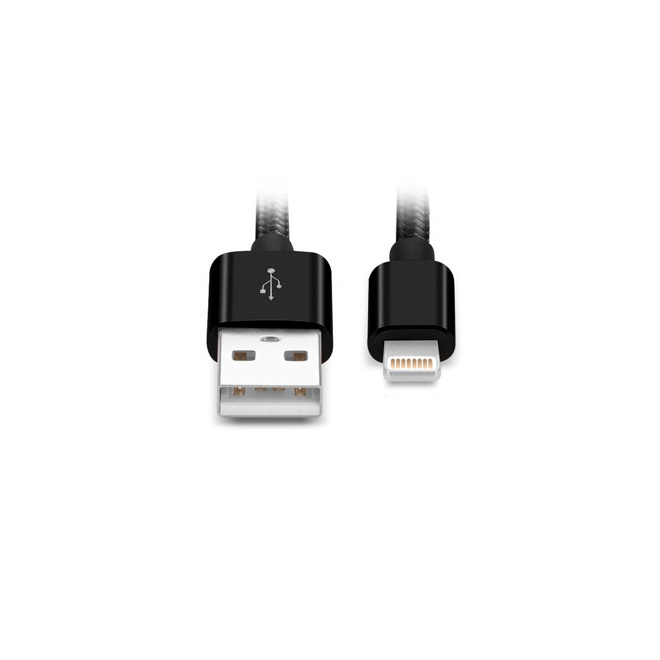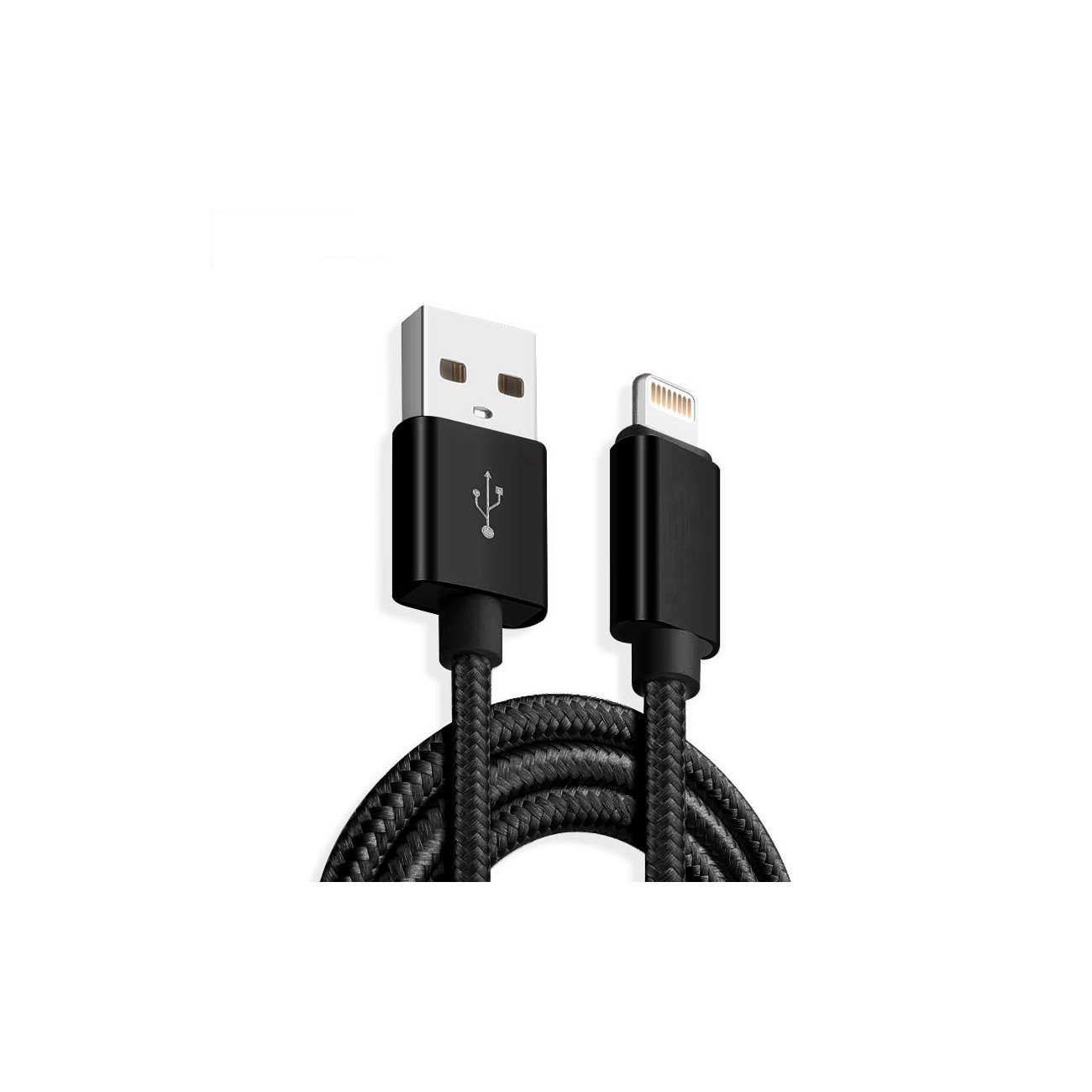 Câble USB Lightning nylon black 2m pour iPhone 5/5C/5S/SE/6/6S/6+/6S+/7/7+ & iPad 4/Mini/Air.