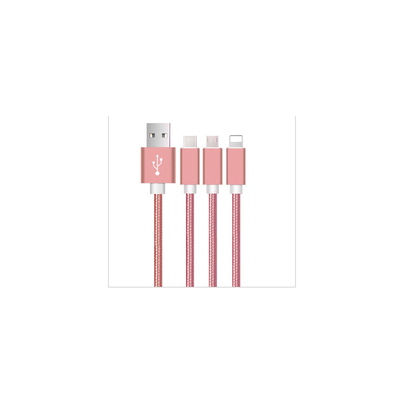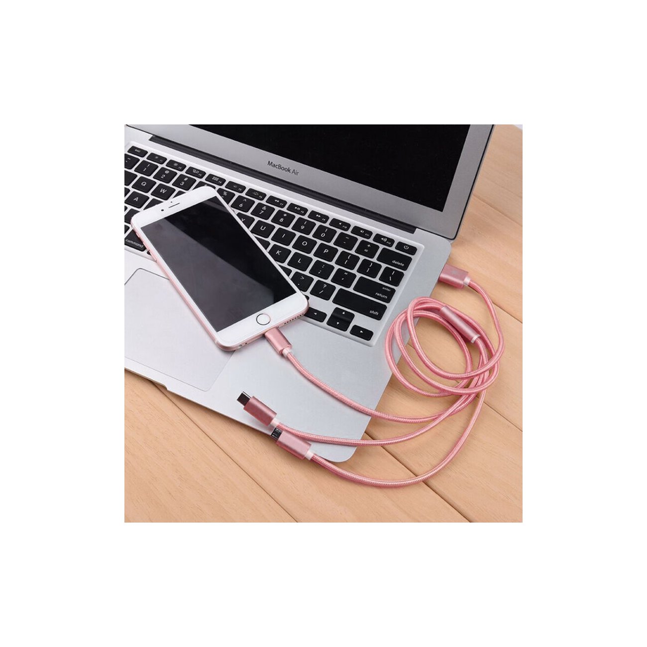 • Câble USB de charge 3 en 1 compatible Micro USB, compatible avec Apple Lightning, interface Type-C - Gold