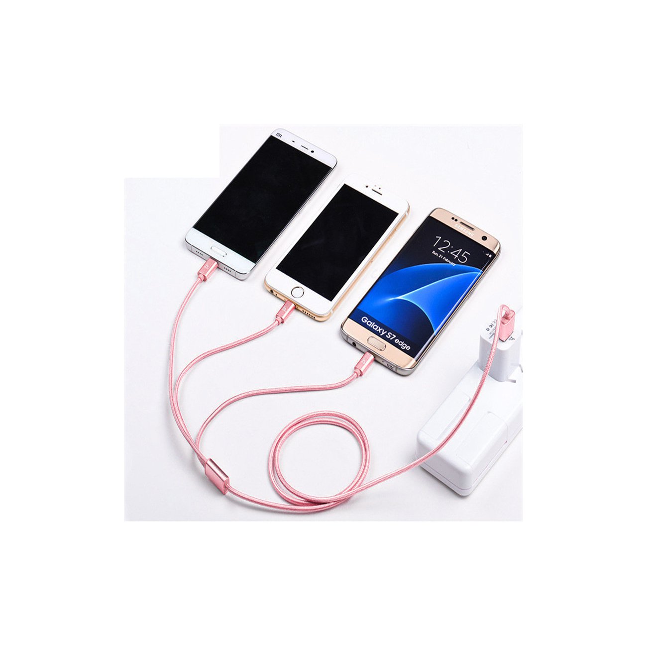 • Câble USB Micro USB nylon rose 2m compatible avec Samsung & Wiko