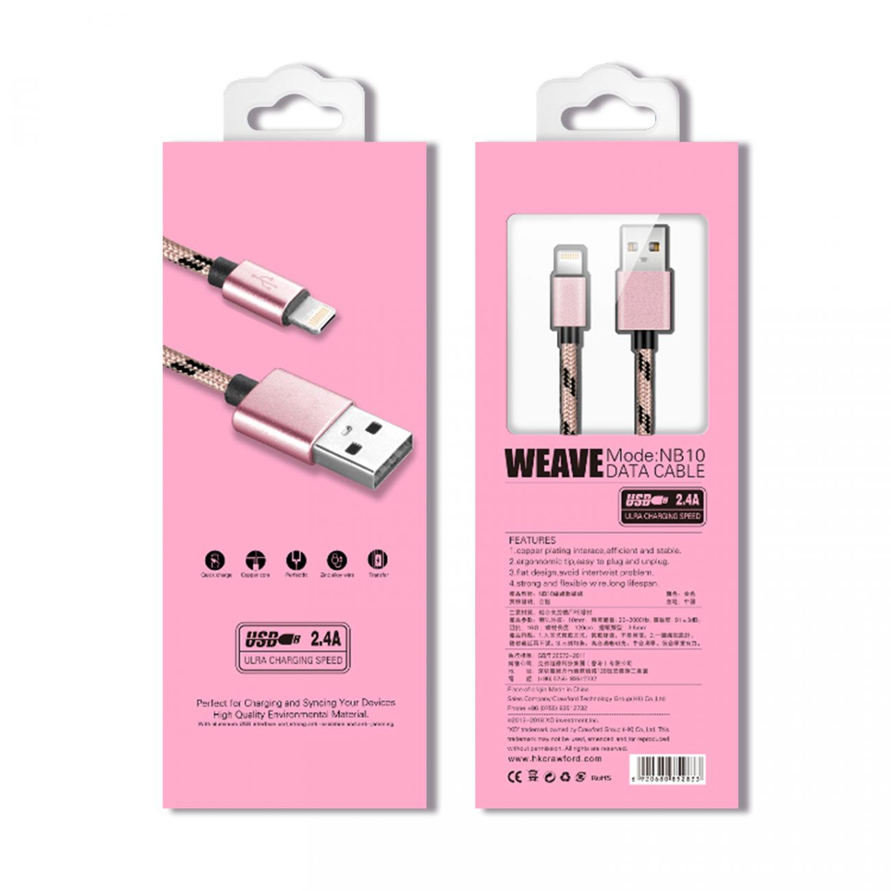 Magnifique et tendance câble USB Lightning Or Rose en nylon.