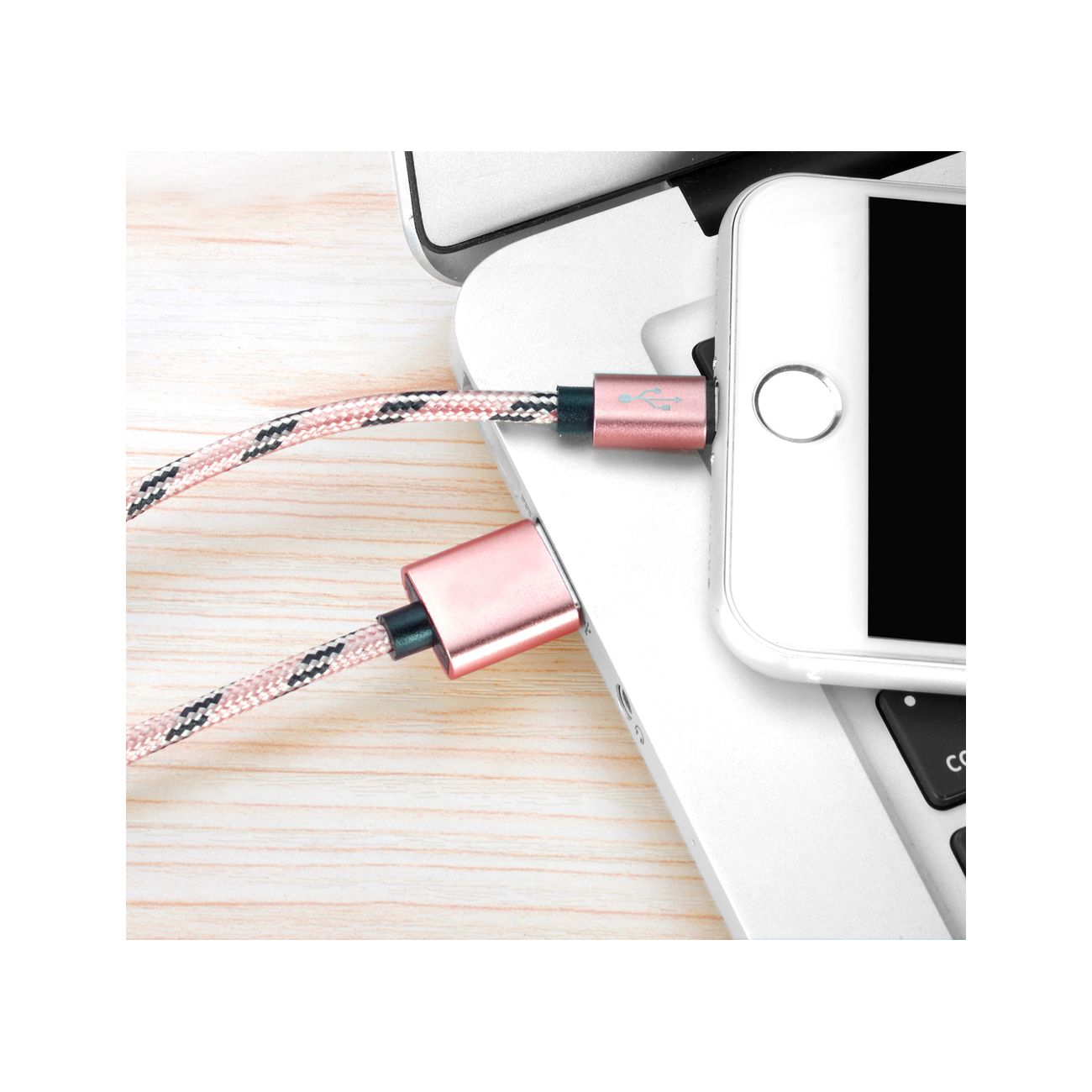 • Câble USB Micro USB nylon rose 2m compatible avec Samsung & Wiko