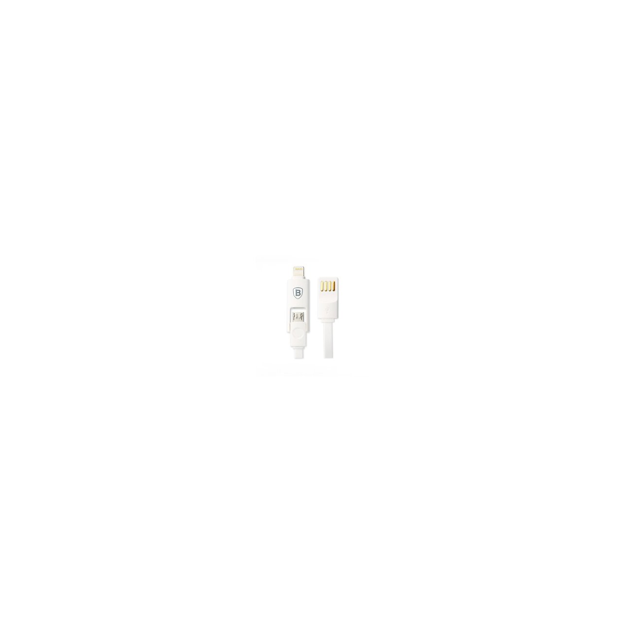 • > cables usb>Câble plat blanc USB / Micro USB + adaptateur Lightning
