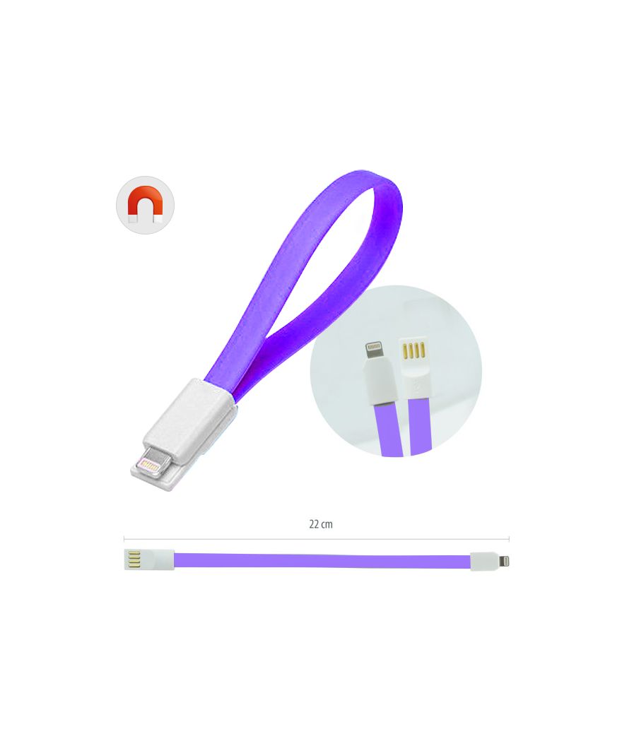 • > cables usb>Câble plat magnétique USB/Lightning 20 Cm Violet