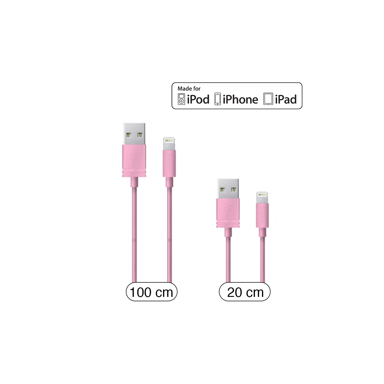 Unplug cable lightning mfi rose 1m et 0.2m