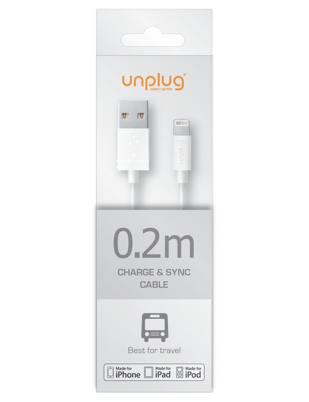 Unplug Cable Lightning Mfi Blanc 0.2m**