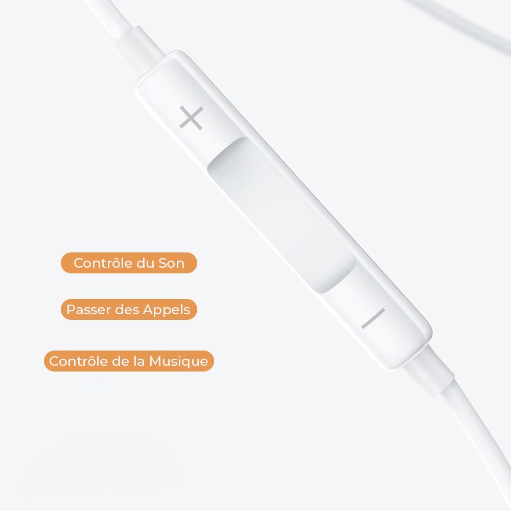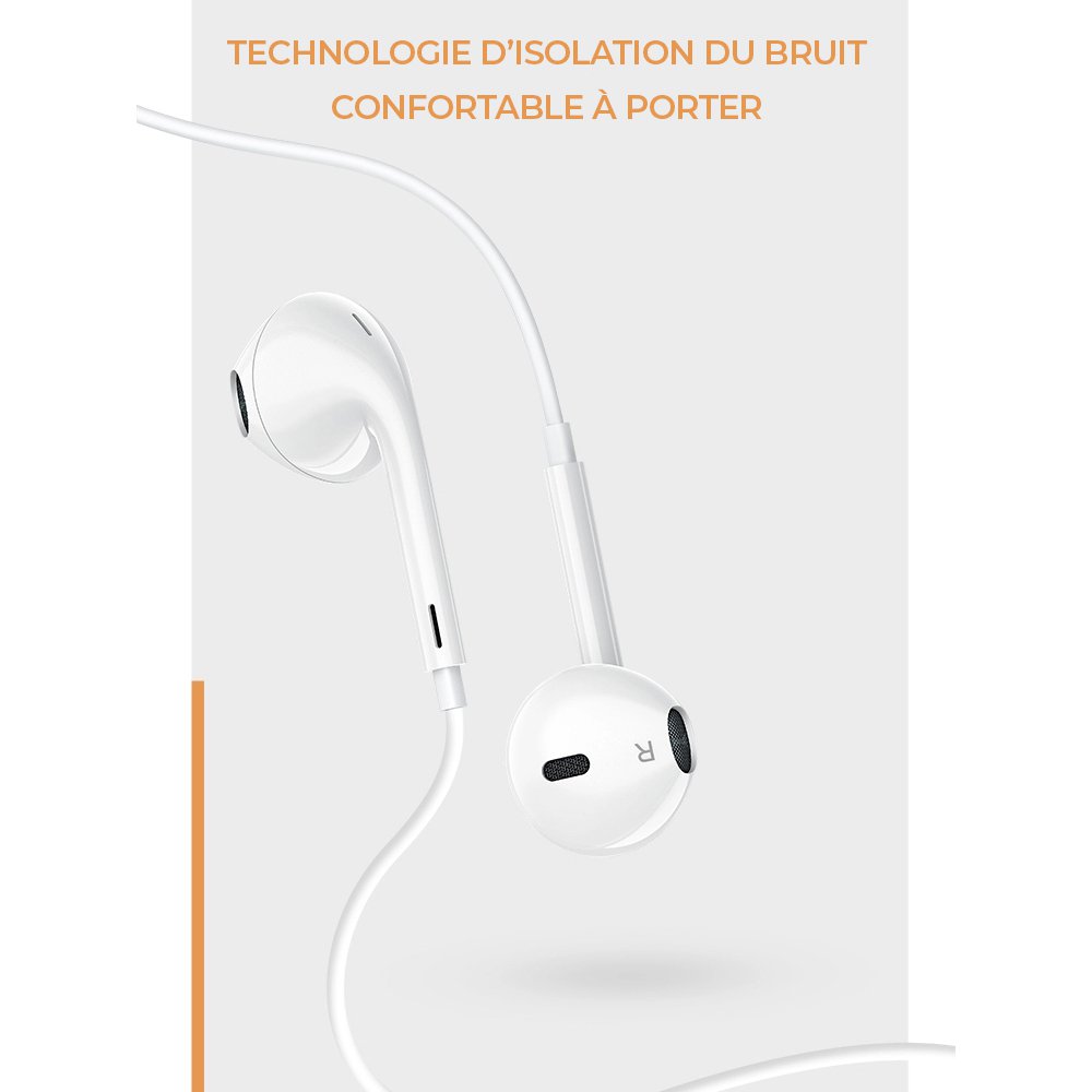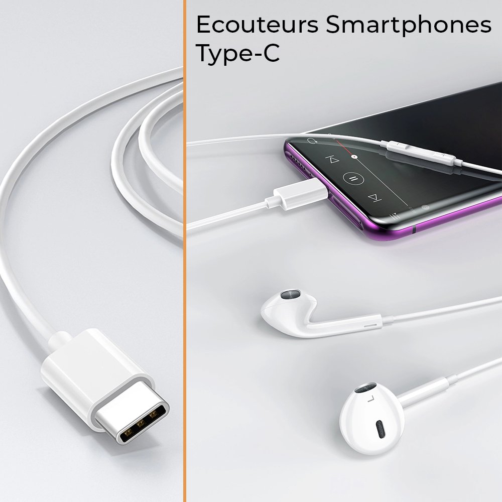 • Écouteurs filaires intra-auriculaires avec prise Type C et  microphone 1,2 m- blanc