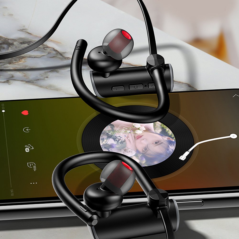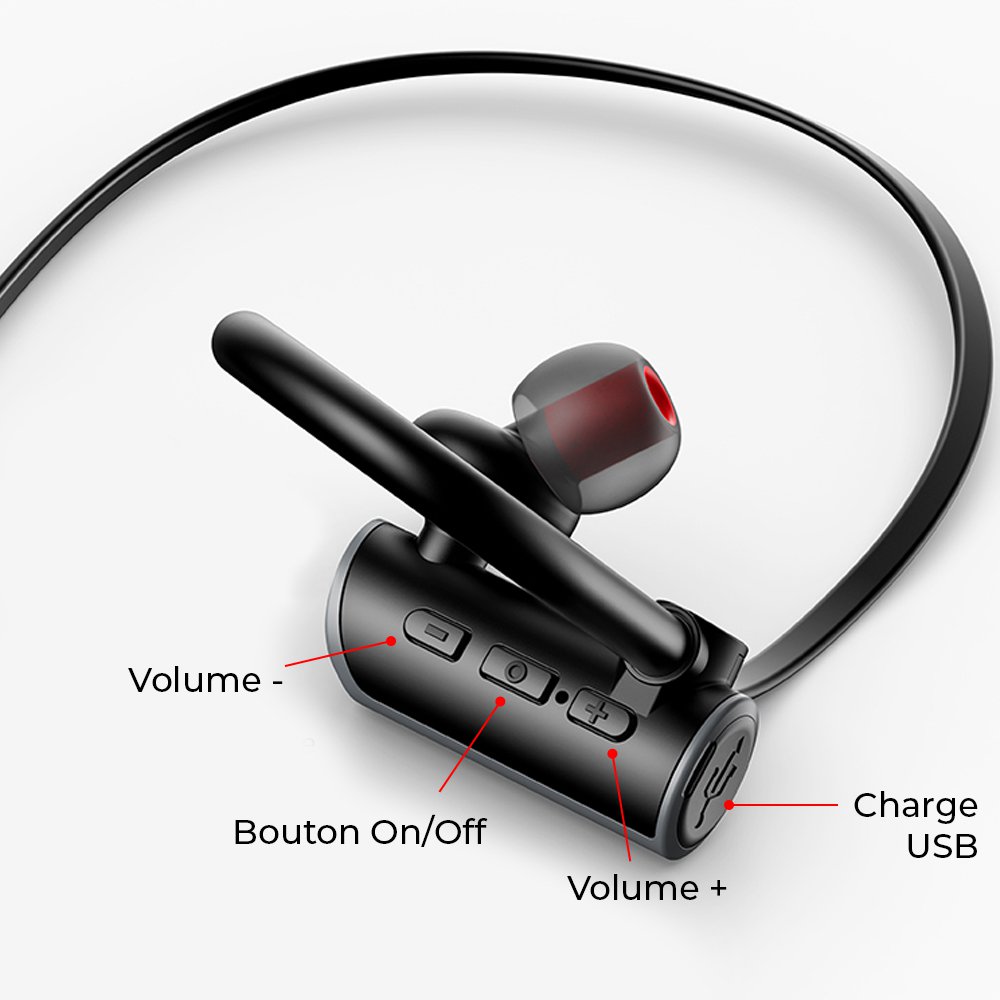 Casque Bluetooth Sport avec Micro - Noir / RougePuce Bluetooth 5.0, transmission plus rapide et plus stableHaut-parleur personnalisé de 10 mm, diaphragme composite haute résolution, offrant une riche gamme de sons clairs et de basses profondesLa réduction du bruit rend les appels téléphoniques clairsRechercher et coupler automatiquement après la mise sous tension, reconnecter à l'appareil récemment coupléContrôle à trois boutons, pratique à utiliserConception anti-perte, suspendue autour de votre cou, pratique pour une utilisation toute la journéeMettez à niveau la double batterie, jusqu'à 90mAh, profitez d'une durée de vie de la batterie assez longueProcédé de pulvérisation d'huile de caoutchouc, doux pour la peau et anti-empreintes digitalesCrochets d'oreille en silicone souple, oreilles parfaitement ajustées, stables à l'utilisationIPX4 grade étanche et résistant à la transpirationLéger et confortable à porterSpécification:Matériel: ABSPoids: environ 16gVersion Bluetooth: 5.0Temps d'appel: environ 6-8hTemps de jeu: environ 6-8hAutonomie en veille: environ 250hCapacité de la batterie: 90mAhTemps de charge: environ 2hMicro: -42 dBGamme de fréquences: 20 Hz-20 KHzDistance de connexion: ≤10mCompatible avec:Appareils Android / Apple avec fonction Bluetooth