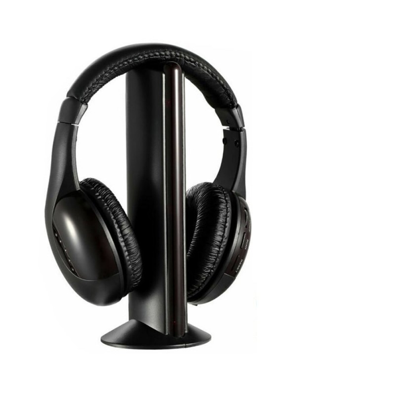 • > High Tech>Audio>Casques>Casque Hifi stéréo 5 en 1, sans fil, avec Radio FM,Microphone HD avec emetteur et support Noir