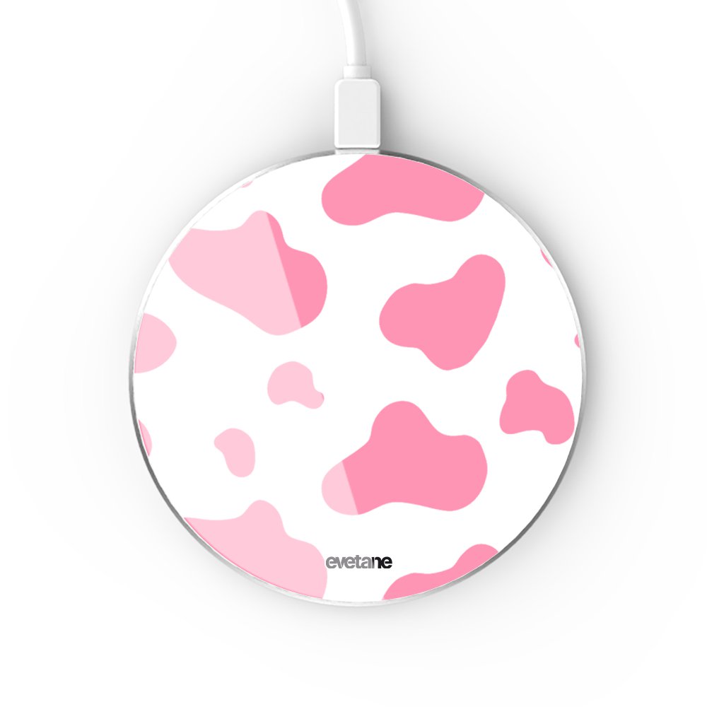 • Chargeur Induction contour argent blanc Cow print pink Evetane