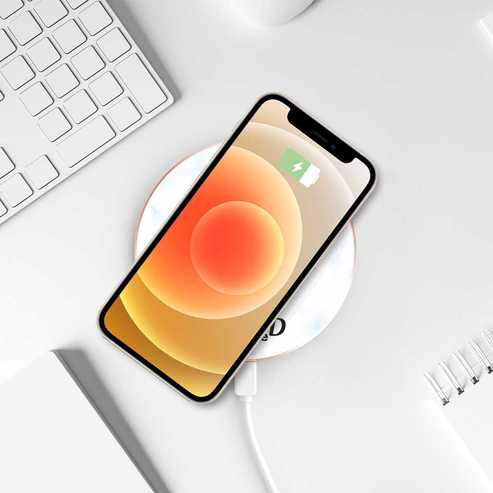 • Chargeur Induction contour argent blanc Ananas geometrique marbre Evetane