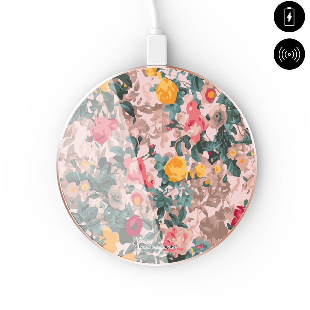 Chargeur Induction contour gold blanc Fleurs Beige et Rose La Coque Francaise