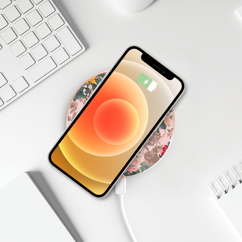 • > High Tech>Charge>Chargeur induction>Chargeur Induction contour gold blanc Fleurs Beige et Rose La Coque Francaise