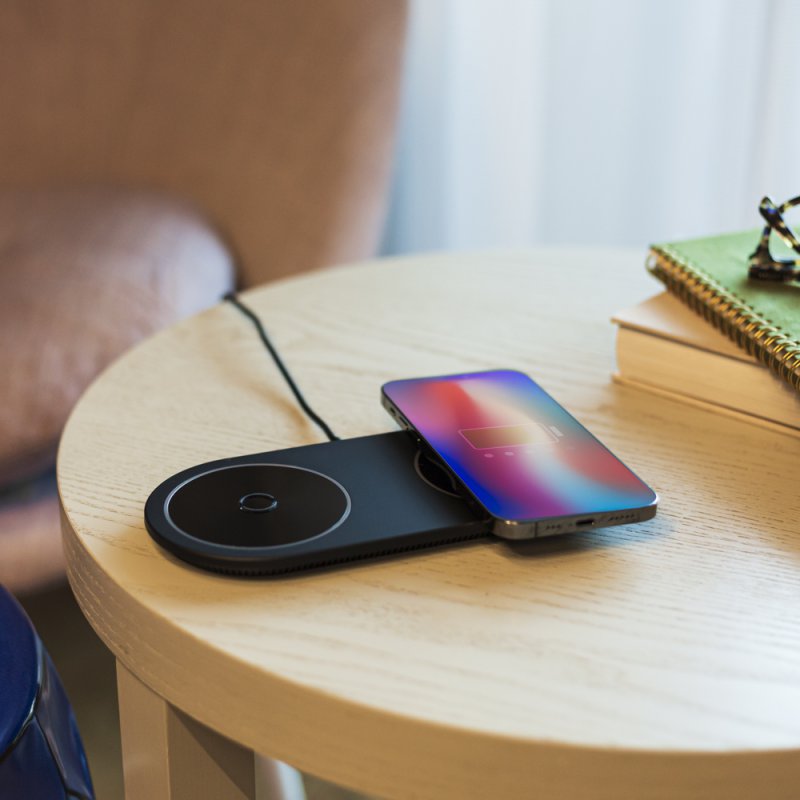 • > High Tech>Charge>Chargeur induction>Chargeur induction double charge rapide 15 W - Noir