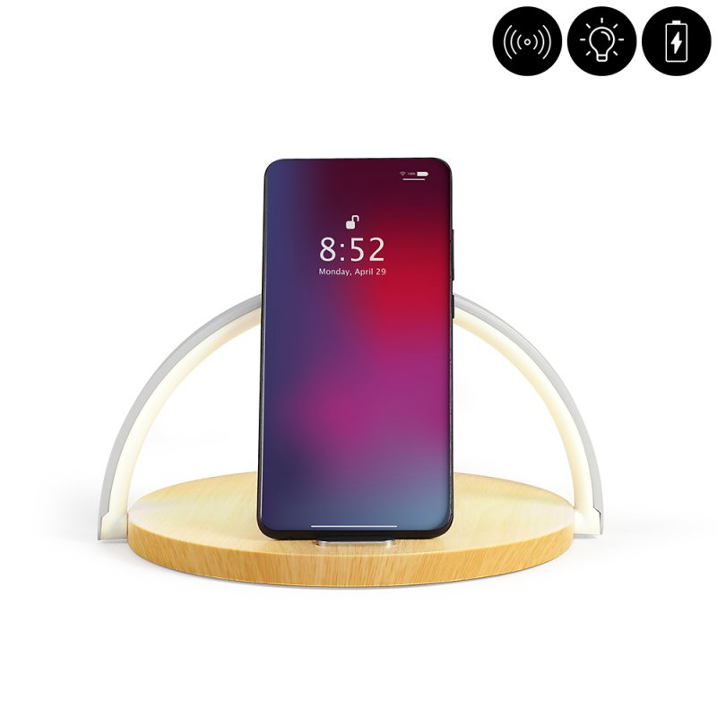 Lampe de chevet tactile et chargeur à induction 10WLampe de chevet tactile 2 en 1Station de chargement sans fil par inductionChargeur rapide 10WPuissance sortie 9V/1,2A (10W)36 LED3 modes d’éclairage : lumière naturelle, blanche ou jauneArceau lumineux pivotantCompatible avec tous les smartphones et appareils certifiés QIAlimentation par câble USB inclusPatins antidérapants
