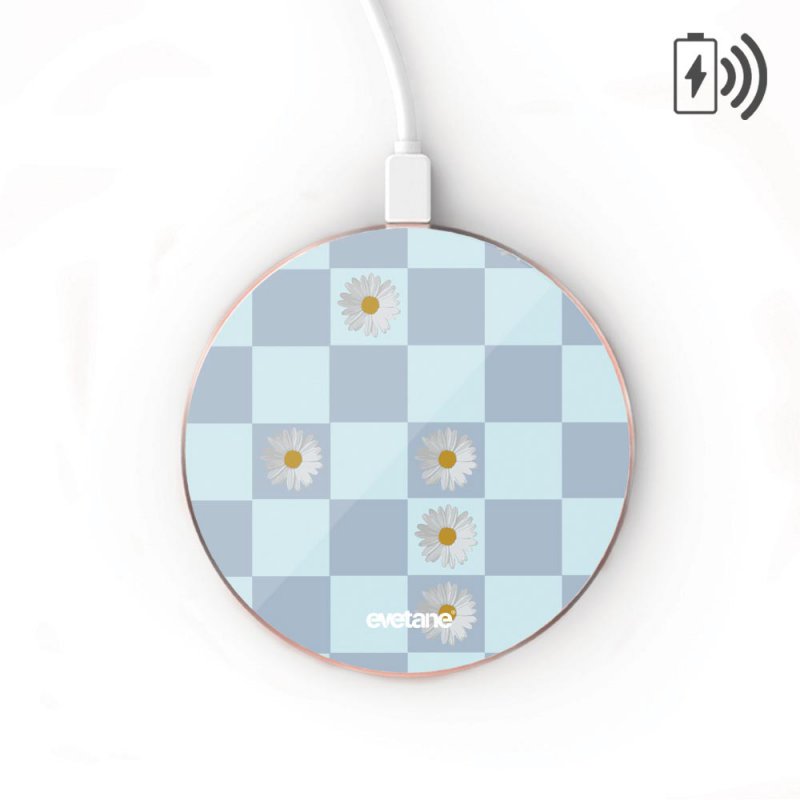 • Chargeur Induction contour gold blanc Damier et Marguerite Evetane