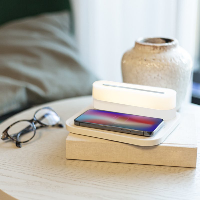 • > High Tech>Charge>Chargeur induction>Lampe de chevet et chargeur sans fil rapide - Blanc