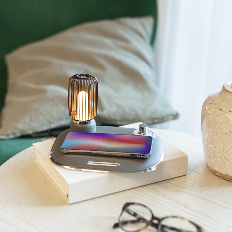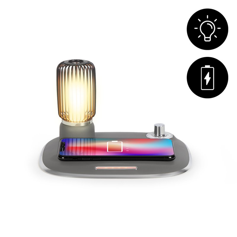 • > High Tech>Charge>Chargeur induction>Chargeur induction avec lampe de chevet - Gris